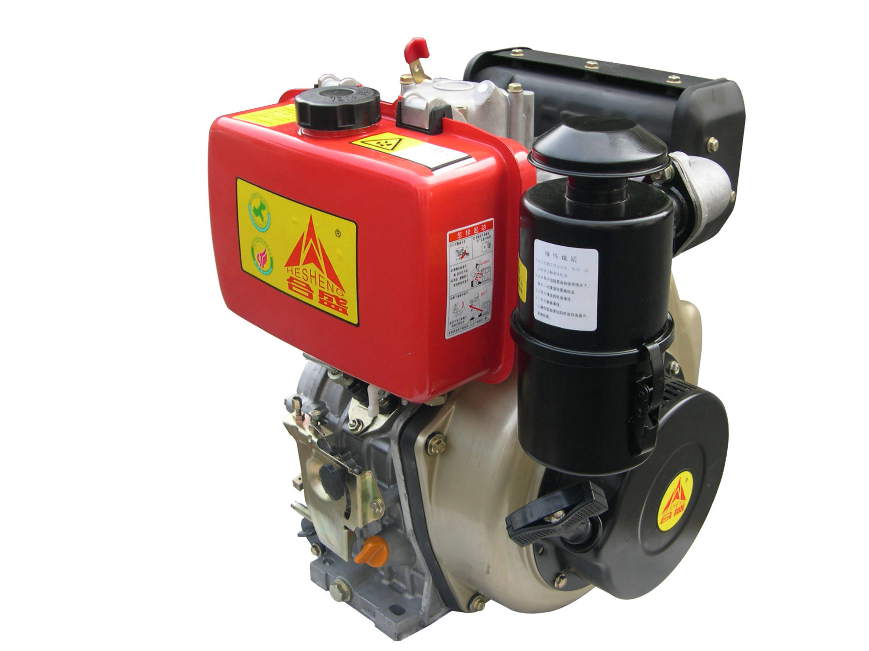 发动机HSW190 : 型号:HS188F 发动机型式:四冲程强制风冷 排量:389 额定功率:8.6 点火系统:晶体管电子点火 启动系统:手启动/电启动 燃油箱容量:17 机油容量:1.1 发电机: