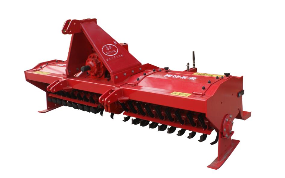 是拖拉机动力输出轴驱动的耕作机具,它是利用刀轴上刀片的旋转和前进的复合运动对未耕地和已犁过的田地进行碎土作业,其性能特点是碎土能力强,一次旋耕达到一般犁耙几次的效果。