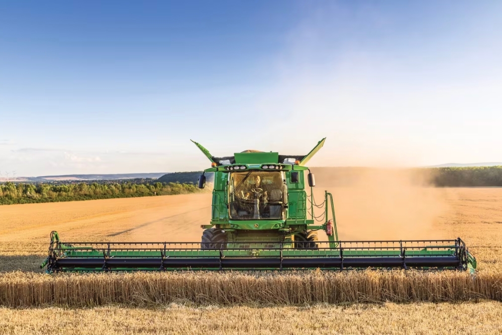 S700 系列收割机使用 TriStream™ 三作物流单纵轴流脱粒分离系统,适用于玉米籽粒、大豆、小麦等多作物收获,配合逐级放大的螺旋上盖板在一拉一放间轻柔脱粒,节省油耗。