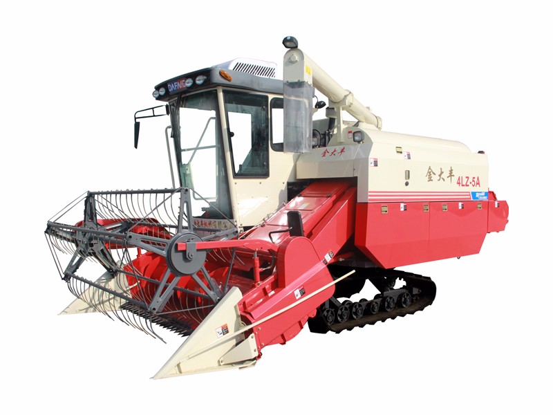 4LZ-5型履带式全喂入谷物联合收割机以收获水稻为主,兼收小麦。机器一次可以完成收割、脱粒、分离、清选等作业。该机结构紧凑、运转方便、操作灵活,特别适用于中小地块作物收获。