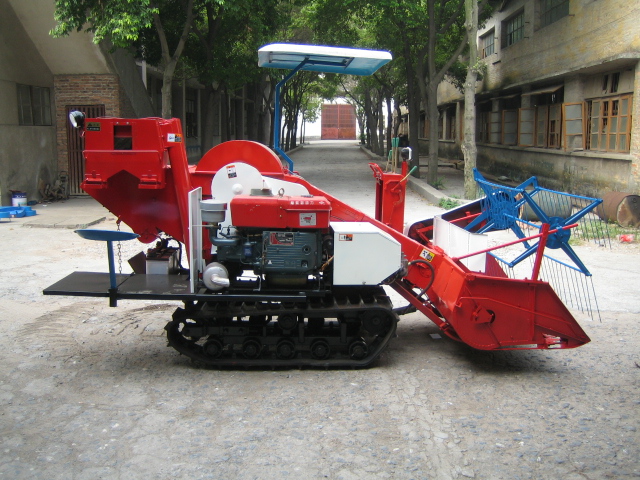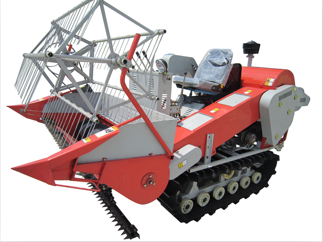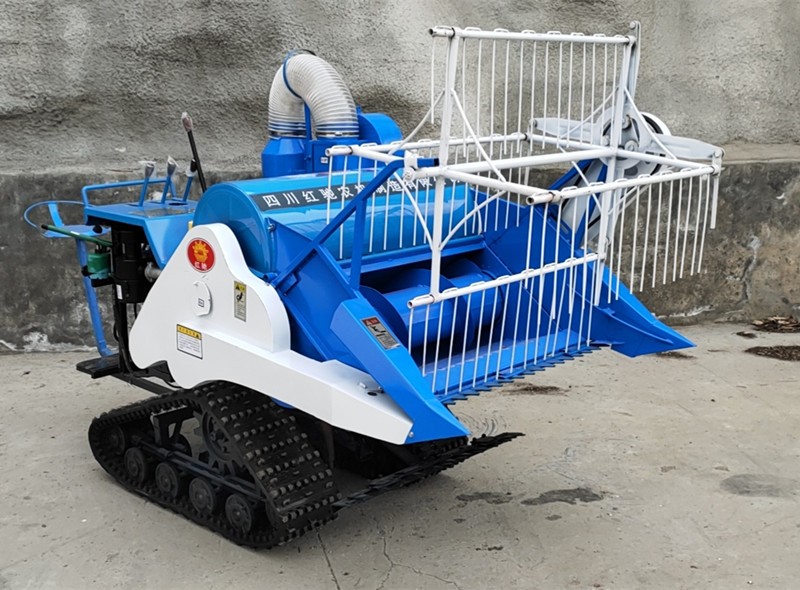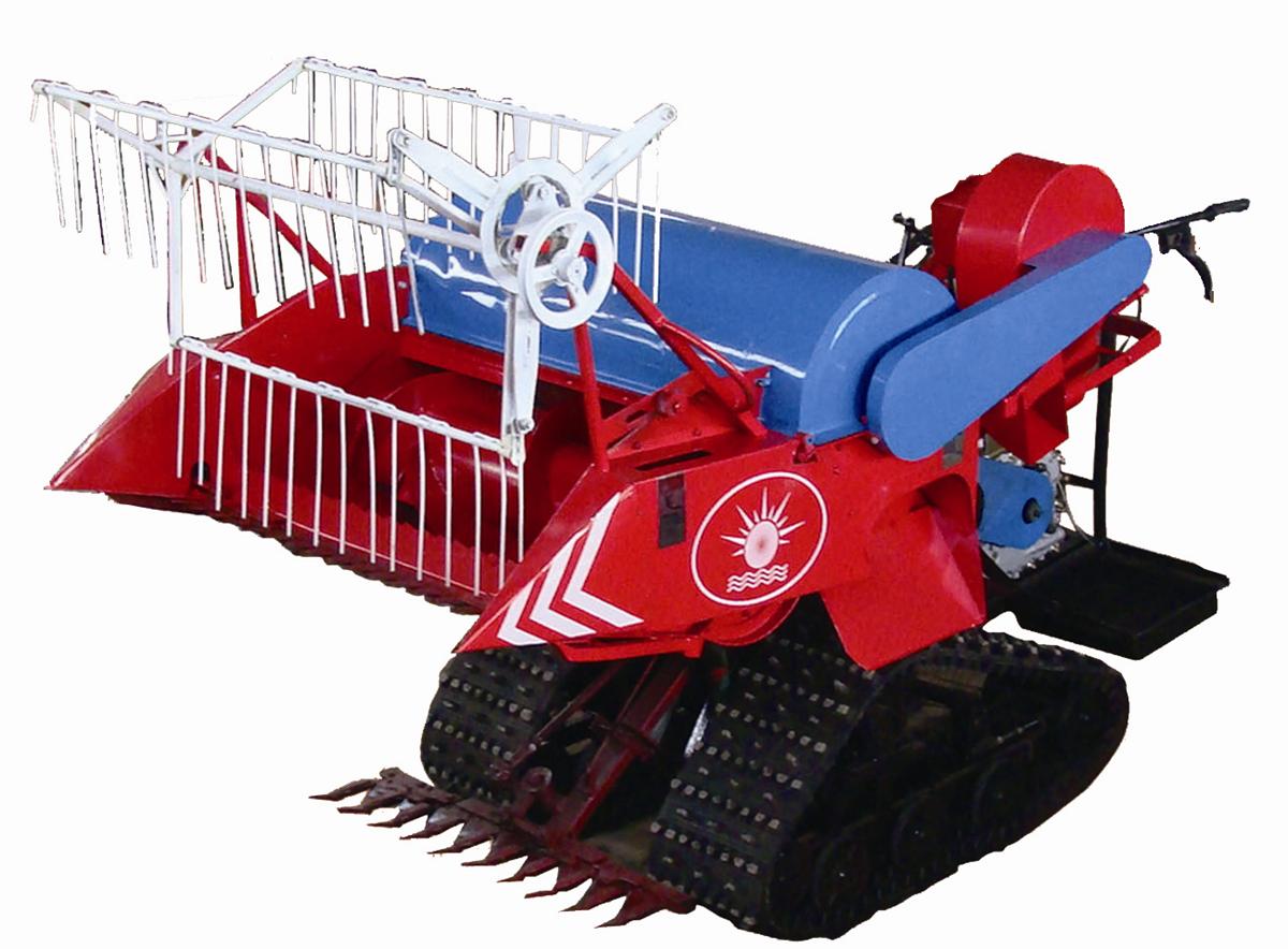 红驰牌履带自走式谷物联合收割机,用于小麦、水稻的收割、脱粒、风选,适应深水田作业。