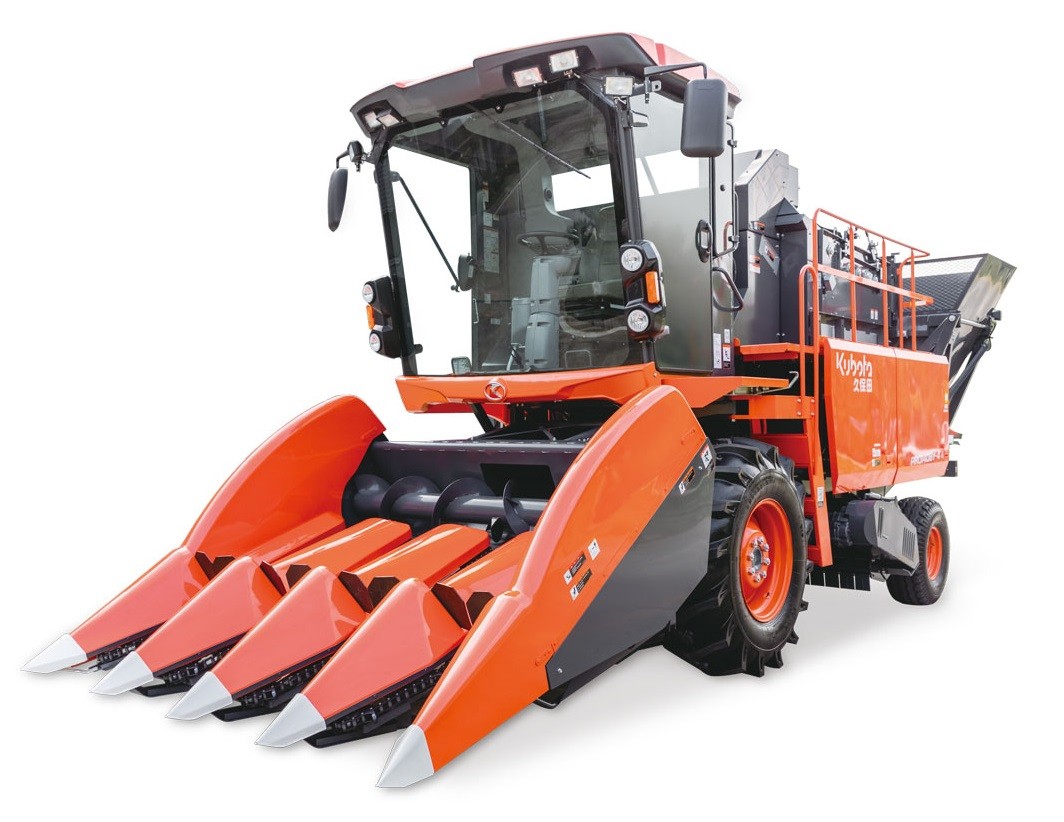 260马力,茎杆切碎回收、玉米摘穗和剥皮,以收获玉米青黄储饲料为主; 收割幅宽2600mm,收割行距在550-620mm