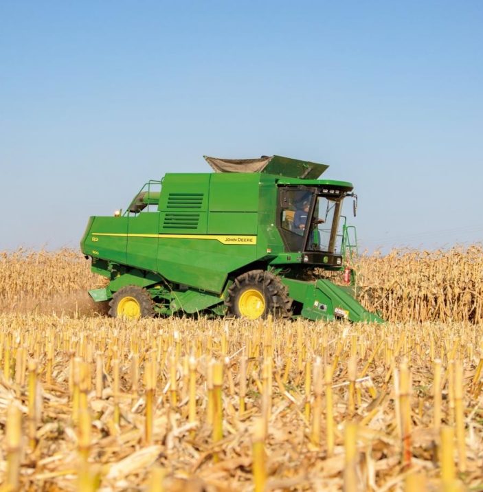 约翰迪尔R2300联合收割机,整车为收获玉米做了优化设计,三段式无级变速全轴流滚筒,充分降低了收获玉米籽粒的破碎率,滚筒上盖 板角度也做了优化调整,进一步降低收获玉米的损失。