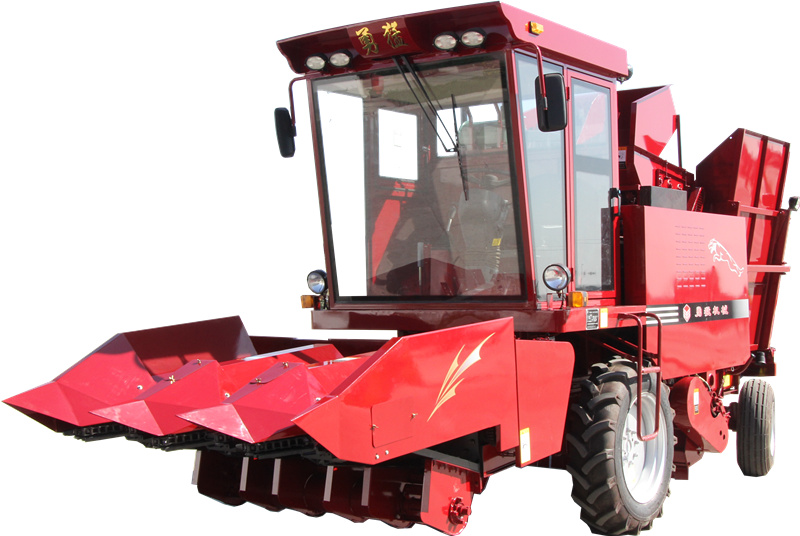 割台专利技术,采用新型对刀拉茎式摘穗箱及新型割台体,拉茎速度快,摘穗效果好;专用扶持器,强制喂入,更加适合收倒伏玉米,收获效率高