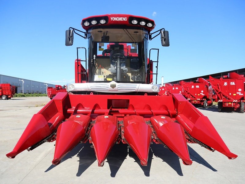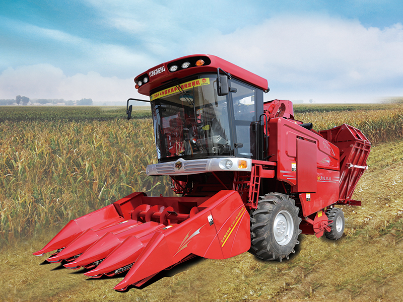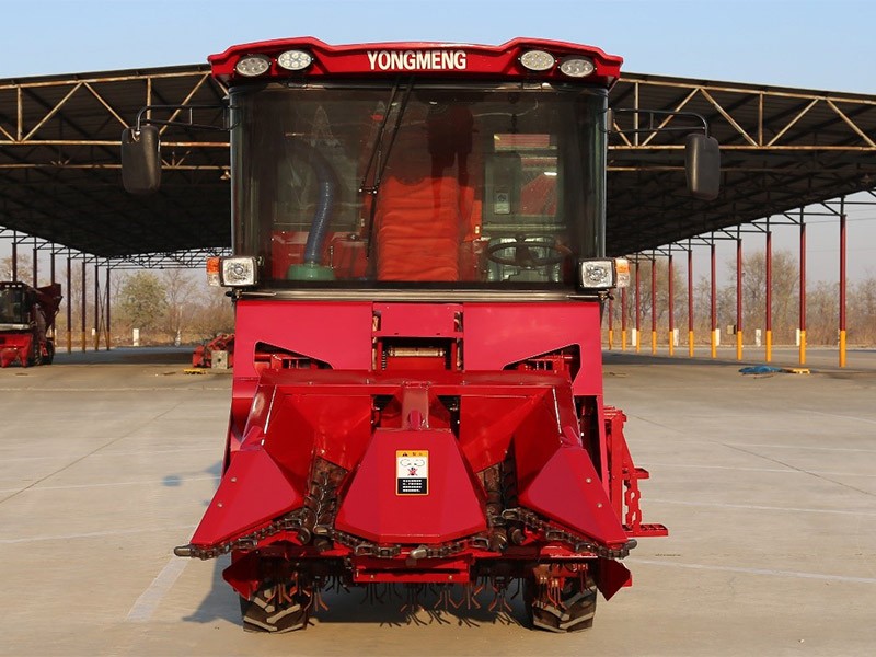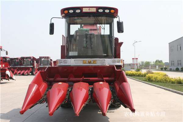 割台专利技术,采用新型对刀拉茎式摘穗箱及新型割台体,拉茎速度快,摘穗效果好; 专用扶持器,强制喂入,更加适合收倒伏玉米,收获效率高;