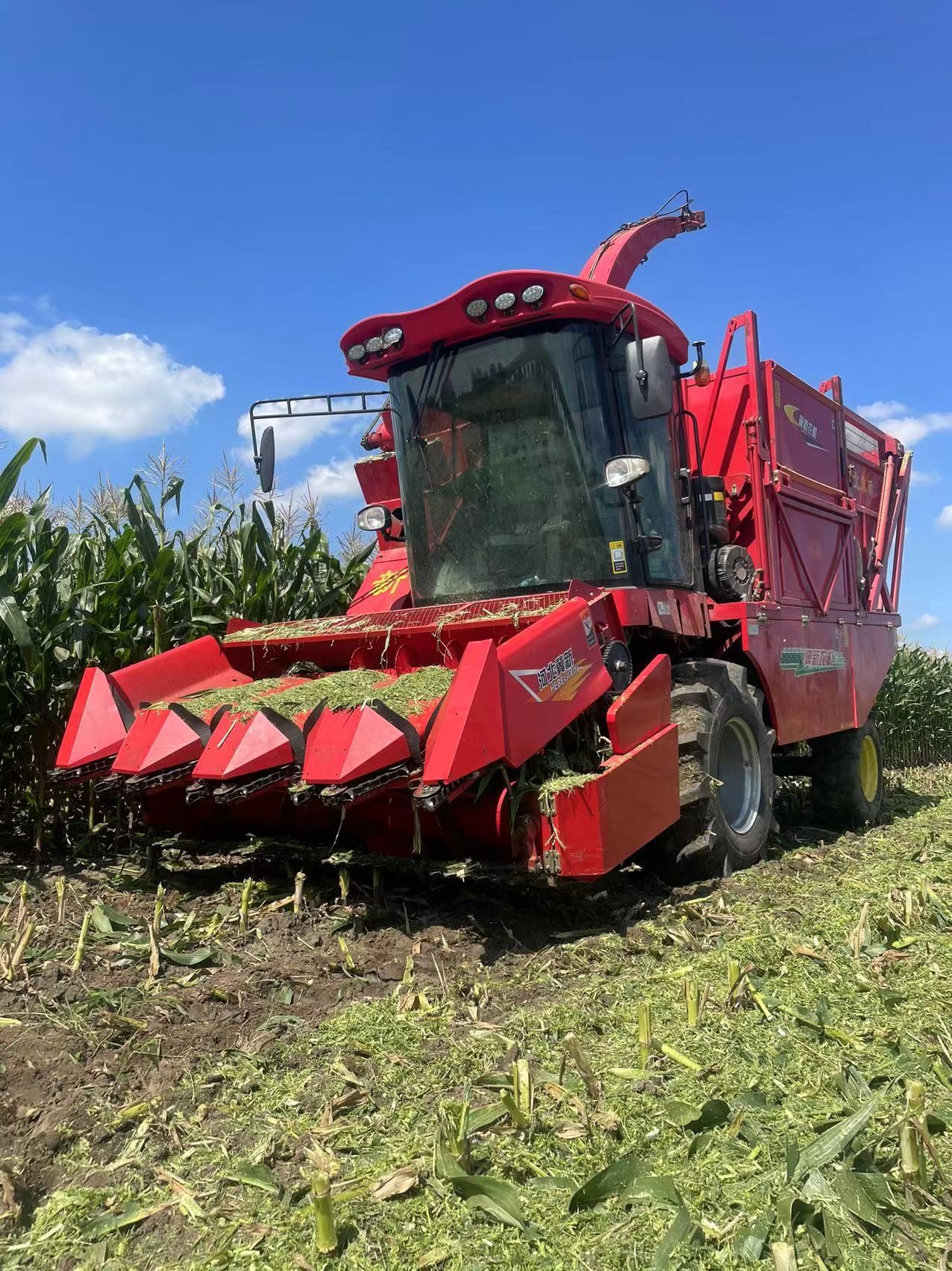 该机可一次性完成玉米的摘穗、果穗剥皮、集装、秸秆粉碎还田等作业工序。工作效率高、操作简便、损失率小、苞叶剥净率高、秸秆粉碎效果好,是理想的玉米收获机械。