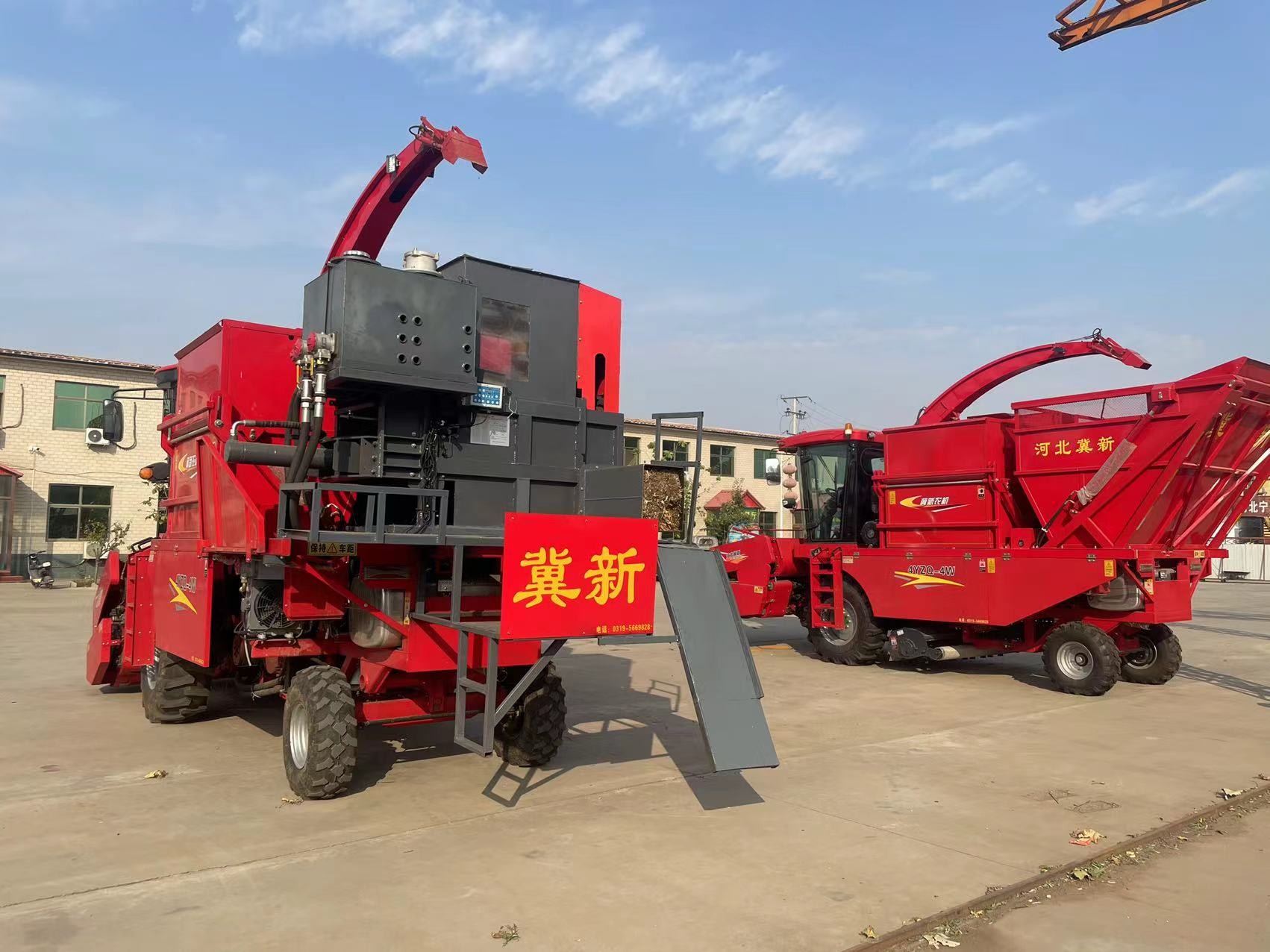 冀新5行穂茎兼收玉米收获机的一下特点:液压行走、一杆操作,模块化配置可选装粘玉米装置、全株青贮割台以及液压打包机