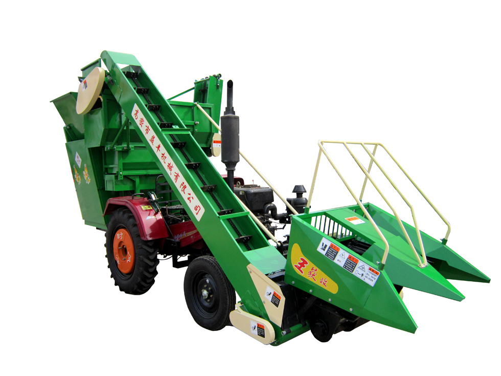 该机是我公司最新研制的与四轮拖拉机配套的新型玉米收获专用机械,可同时完成玉米的摘穗、装箱、秸秆切碎还田等作业,也可换下切碎装置进行玉米秸秆回收作业。