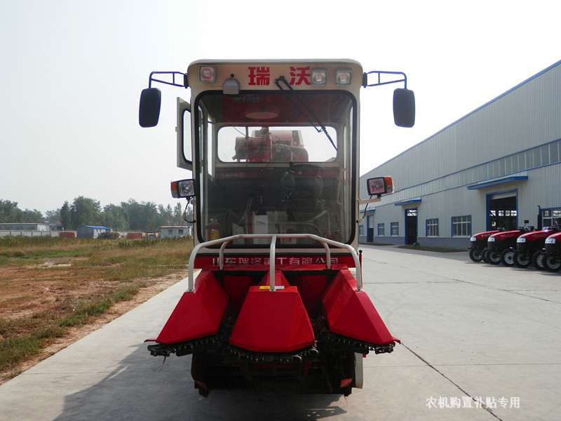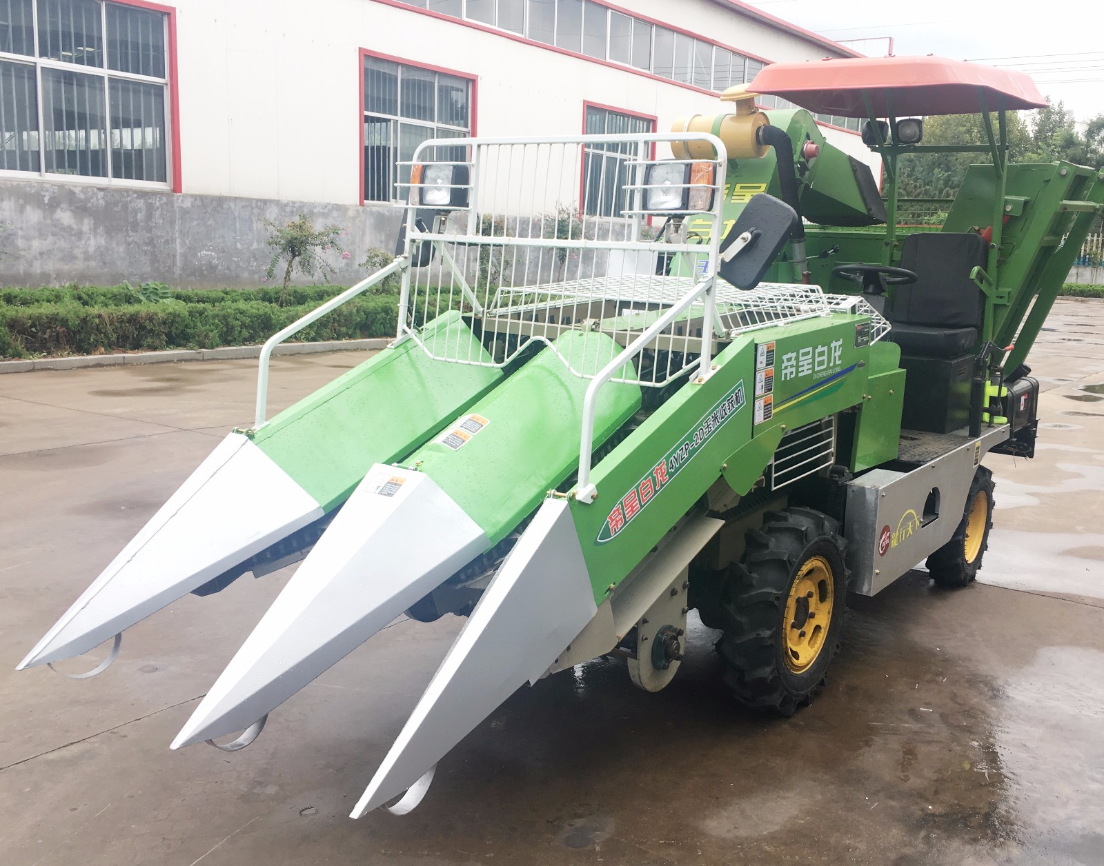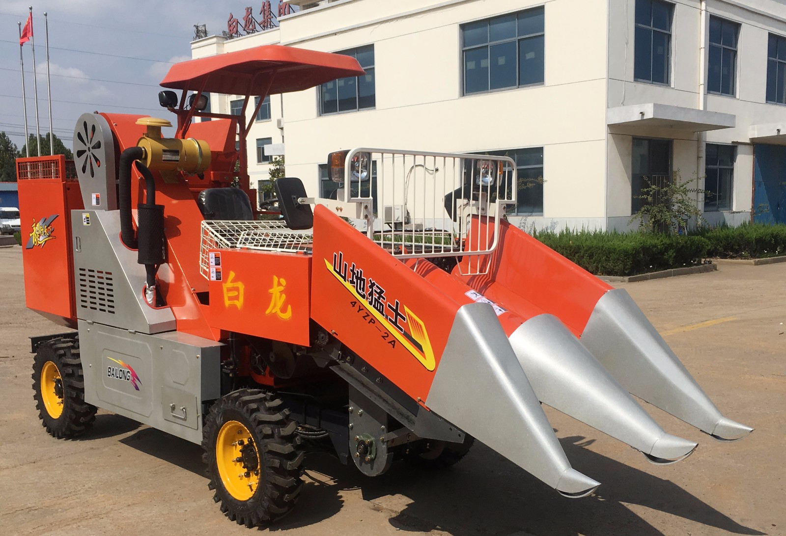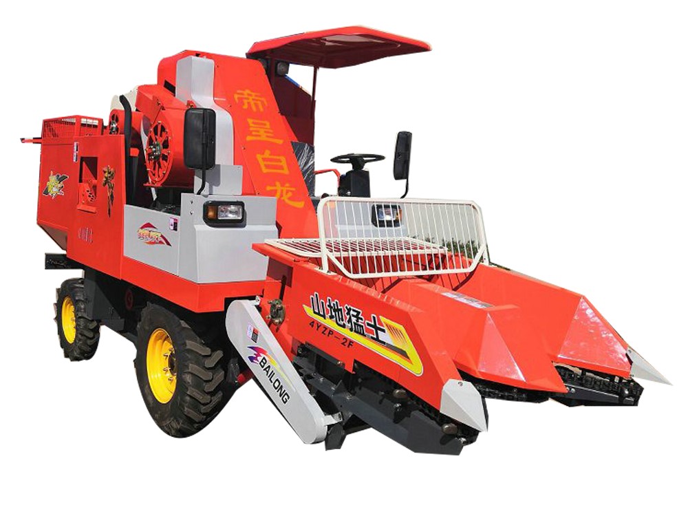 四轮驱动,通过性能强,转弯半径小,操作灵活,类似“小坦克”,适用于山地丘陵地块作业。二行收割,具有剥皮、切碎、输送、卸粮等功能,深受农民朋友喜爱。