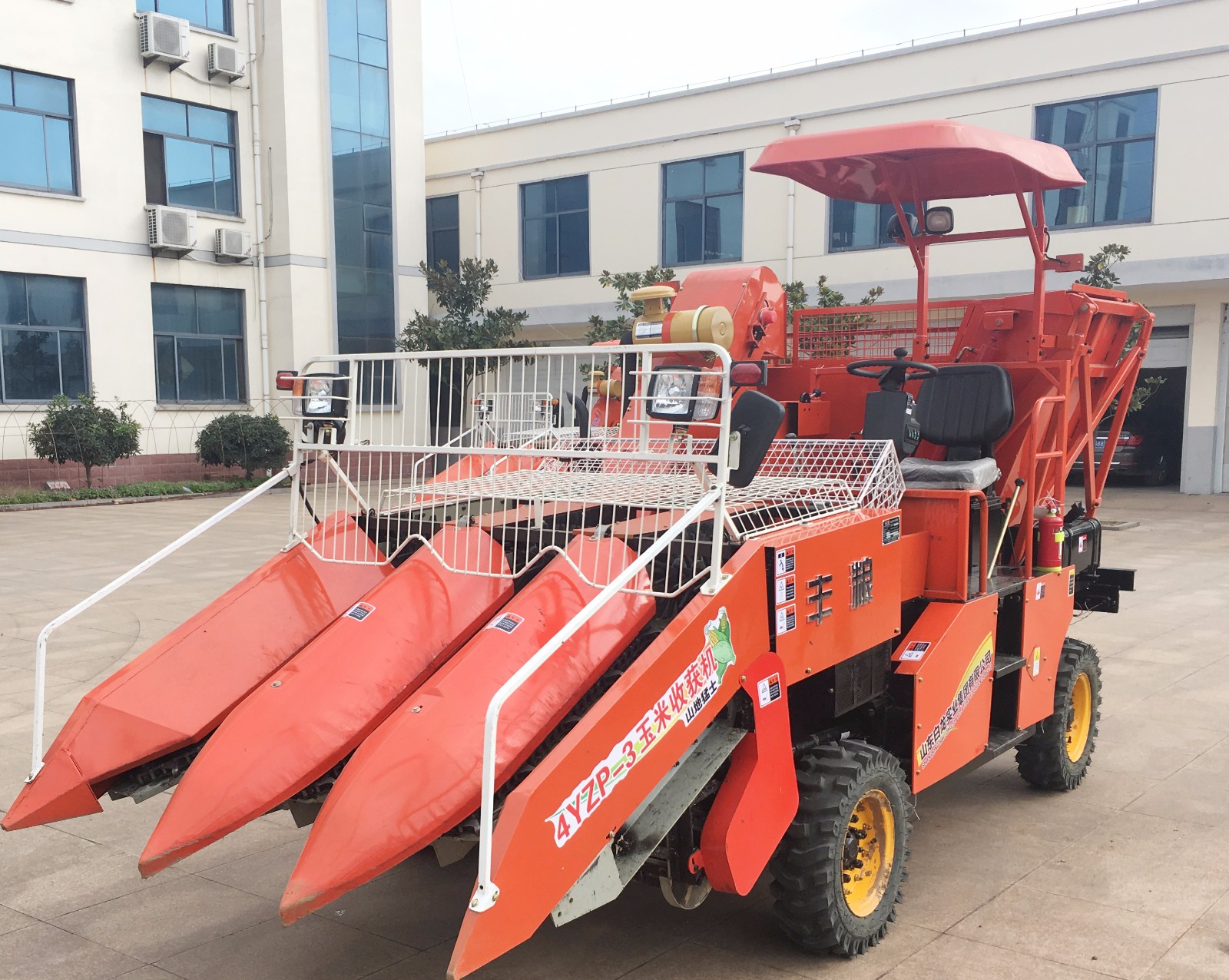 适用于山地、丘陵、平地等不同区域作业,具有三行收割、剥皮、切碎、输送、卸粮等功能。