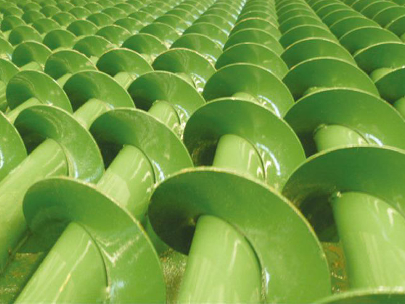 可生产不同长度、厚度、左右旋转方向均可的碳钢、不锈钢、锰钢材质的螺旋叶片及螺旋搅龙轴,并可根据叶片规格和客户要求,采用连续冷轧型、连续缠绕型、分段等厚型三种不同制造工艺和设备进行设计制造。