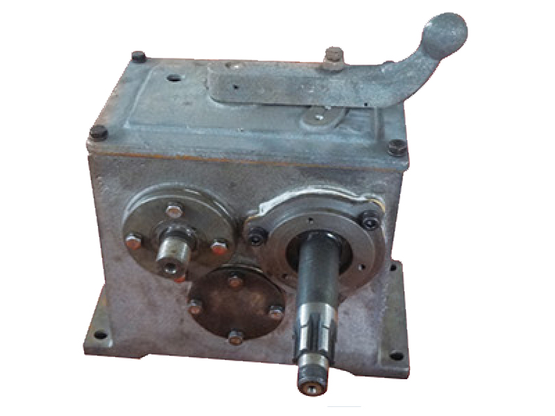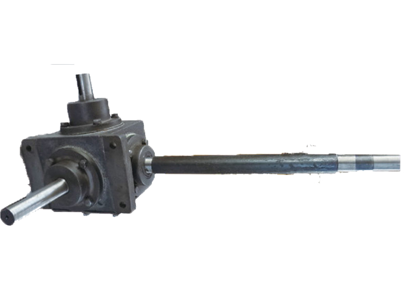 玉米收获机齿轮传动箱属于农业机械;在箱体同一壁面上平行配装左、右拨禾链驱动轴,左和右拨禾轴伞齿轮分别固装在左和右拨禾链驱动轴端部