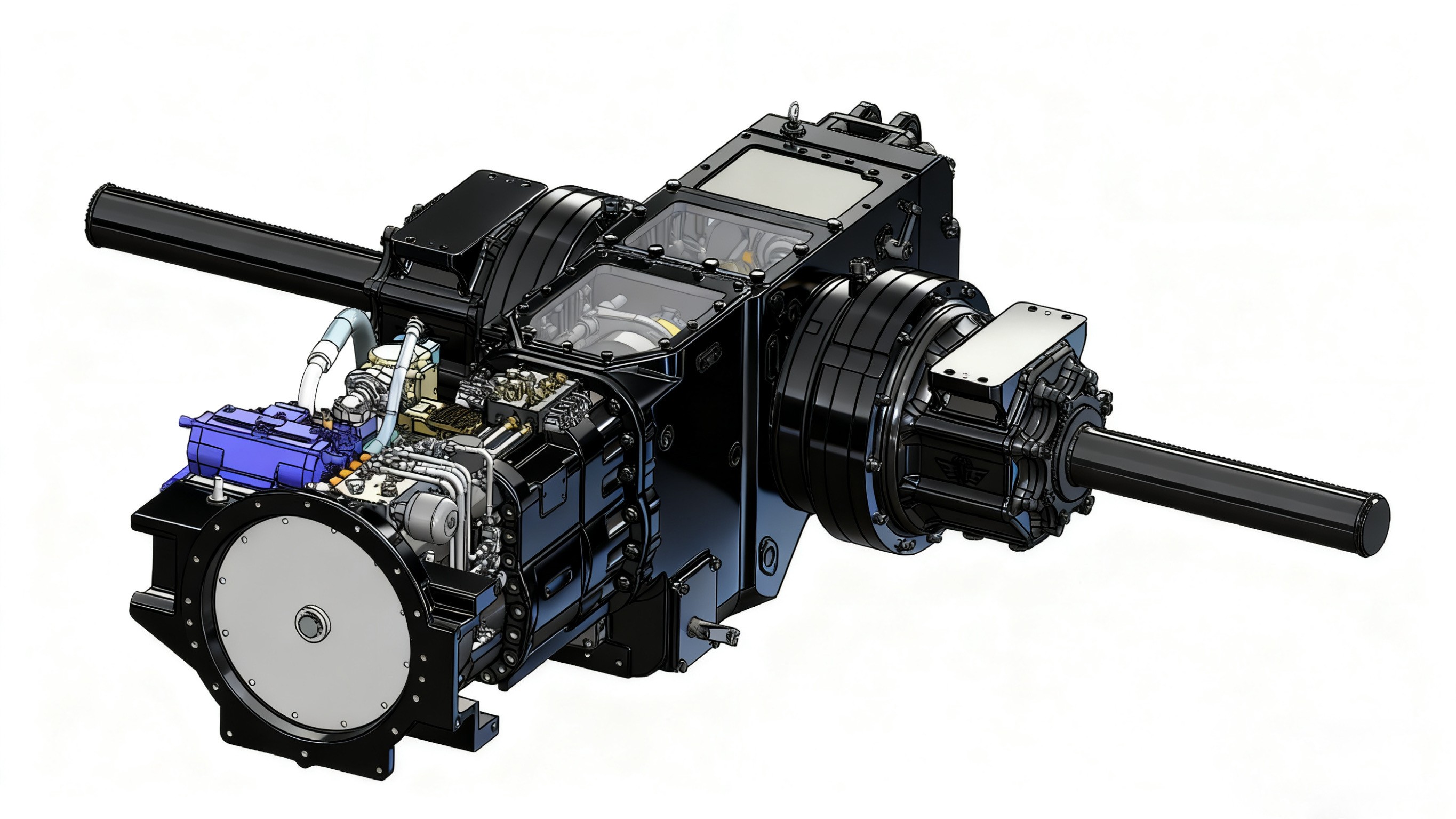 一泵一马达输入结构,可以实现三个前进挡、三个倒挡,操纵方便