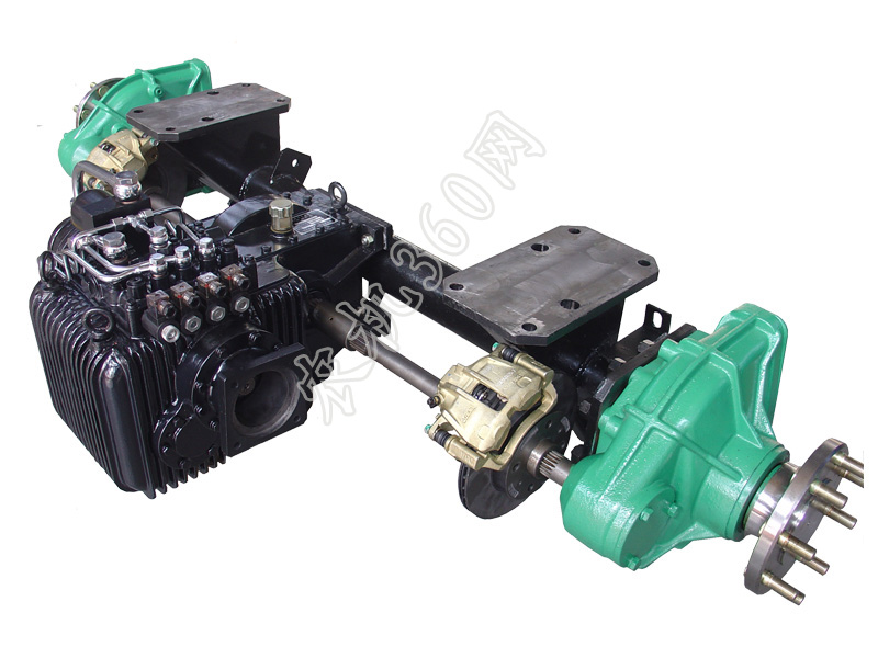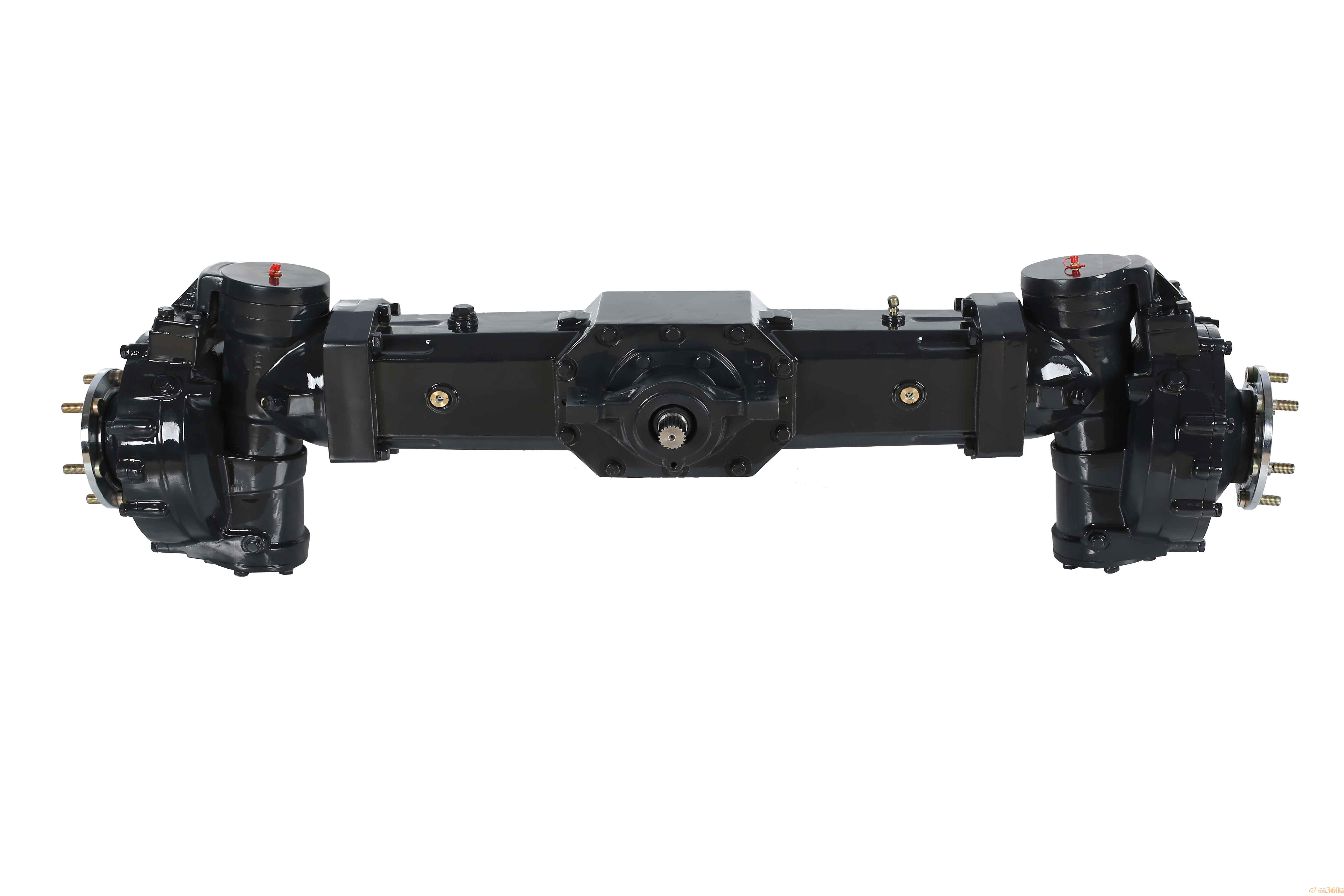 吸取国内外拖拉机驱动桥的先进技术,采用中置式传动轴,摆动式中央摆销,内部结构包括中央减速、传动差速器和末端双锥齿轮减速。