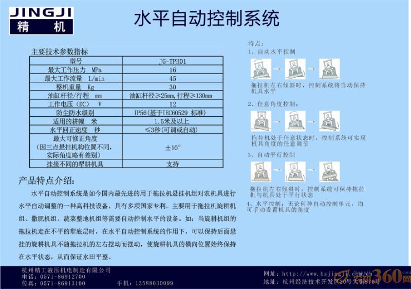 油缸杆径30MM,行程140MM,最大可修正角度不小于10°,水平回正速度1秒~3秒(可调)