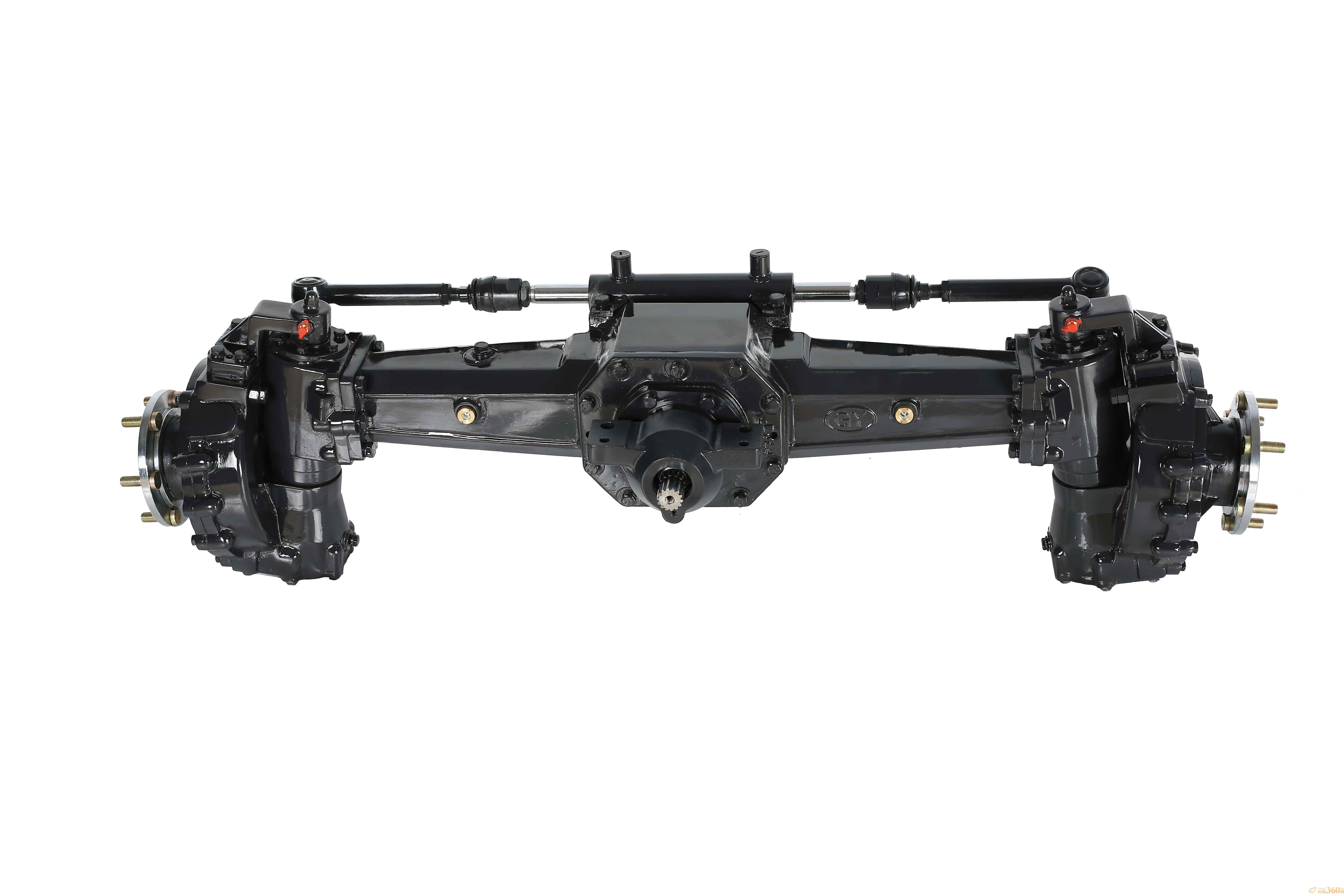 吸取国内外拖拉机驱动桥的先进技术,采用中置式传动轴,摆动式中央摆销,内部结构包括中央减速 、传动差速器和末端双锥齿轮减速。