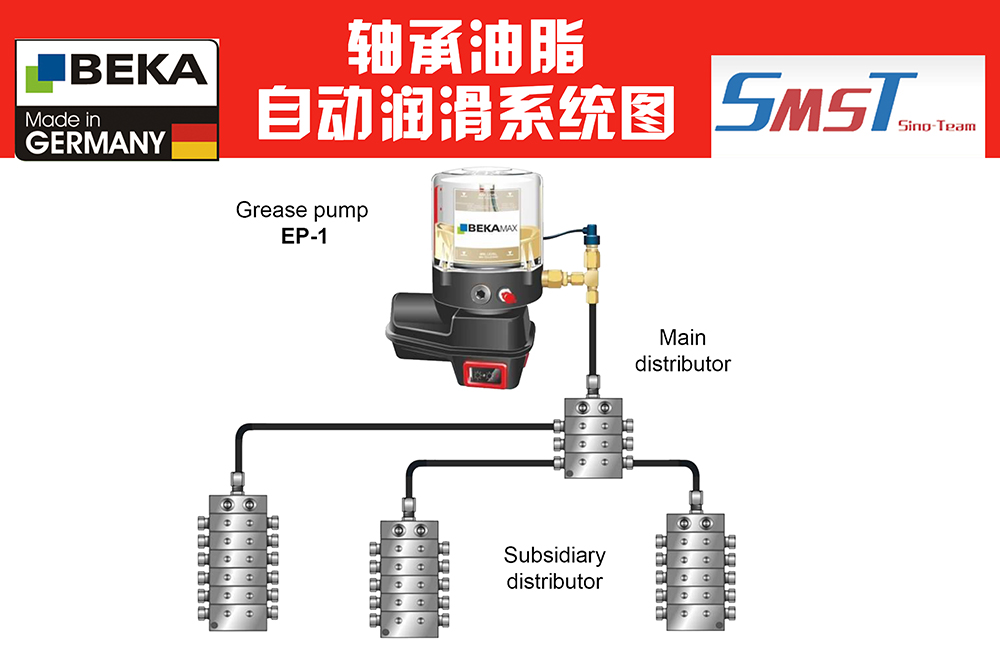 EP系列润滑泵主要用户农牧机械行业的青贮机、圆捆机的轴承润滑上,自带控制系统,能定时定量给轴承泵送润滑脂。不同轴承所需润滑脂的量在MF-X分配器上能进行大小的匹配,这样能让轴承更好的起到保护重用。
