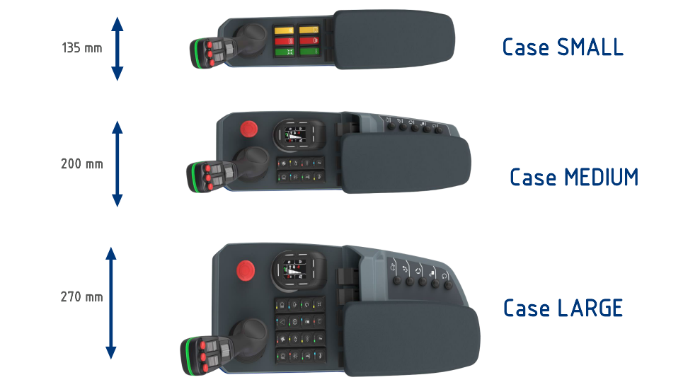 得益于在工程机械、农业机械和物流行业领域的丰富经验,Hezo为您提供了一个横向的整体性解决方案,打造了这款全新一代多功能扶手箱。 三种尺寸,多种选择,满足无限可能