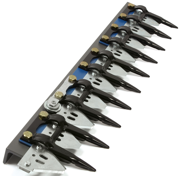 刀片锋利精准, 切割力大 护刃器上下双面切割,质量轻 无摩擦运动减少震动 直线运动环保省油 割幅为3-12米 广泛使用于世界各大主流割台上 舒马赫知名度高