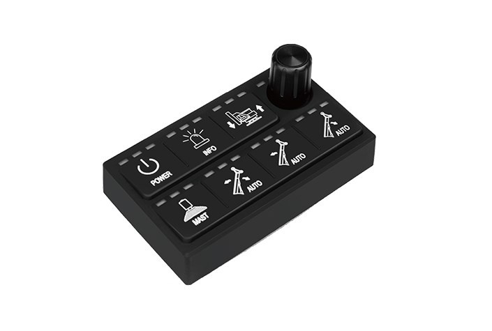 SPM-KEYP-B08是长沙硕博电子科技股份有限公司开发的一款经济型控制面板。该产品具备1路CAN总线,1路高边输出,7个硅胶按键,1个旋钮(带按键),每个硅胶按键配备三个不同颜色的LED。