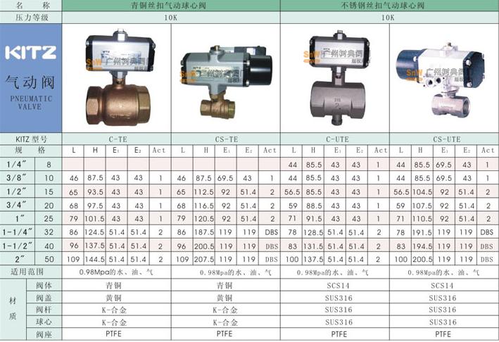 日本北泽阀门 日本KITZ阀门 小型气动阀门 C-TE C-UTE C-TNE CS-TE CS-UTE CS-TNE驱动器是双活塞式结构,外型小巧及轻量化。 结构简单,零部件少,故障发生可能性低,耐