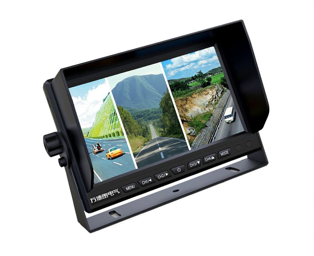 1,尺寸有7寸、10寸等多个规格2,可以支持二画面、四画面等3,独特设计的电源,抗高电压冲击