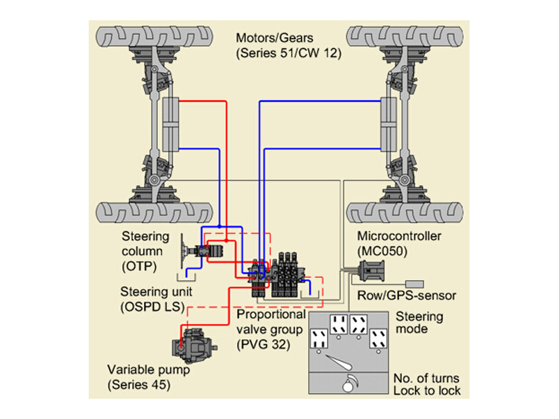 丹佛斯转向器排量从32至1200CC,能适应大、中、小各种车型的转向系统,并有多种转向模式,开芯闭芯,有反馈,无反馈,负载敏感,双排量,更有电控模块可选,实现自动转向等高端应用。