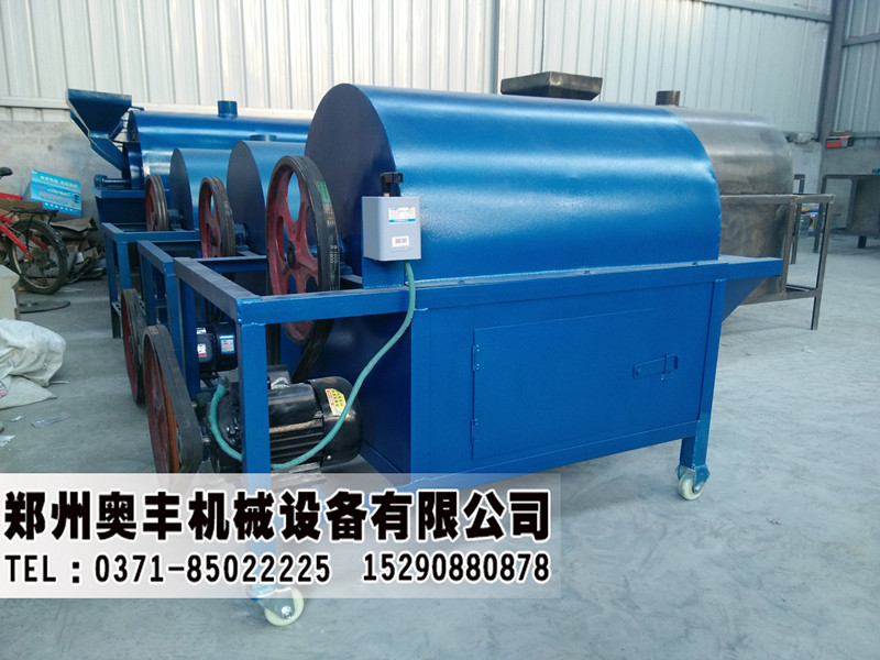 炒料机也称为炒货机或者炒锅,多与各种型号榨油机配套使用的,也有单独做加工干果使用。我今天介绍的炒料机采用滚筒卧式结构,滚筒加热均匀,并有保温功能,自动旋转、自动翻炒、自动出锅,工作时滚筒不停地旋转