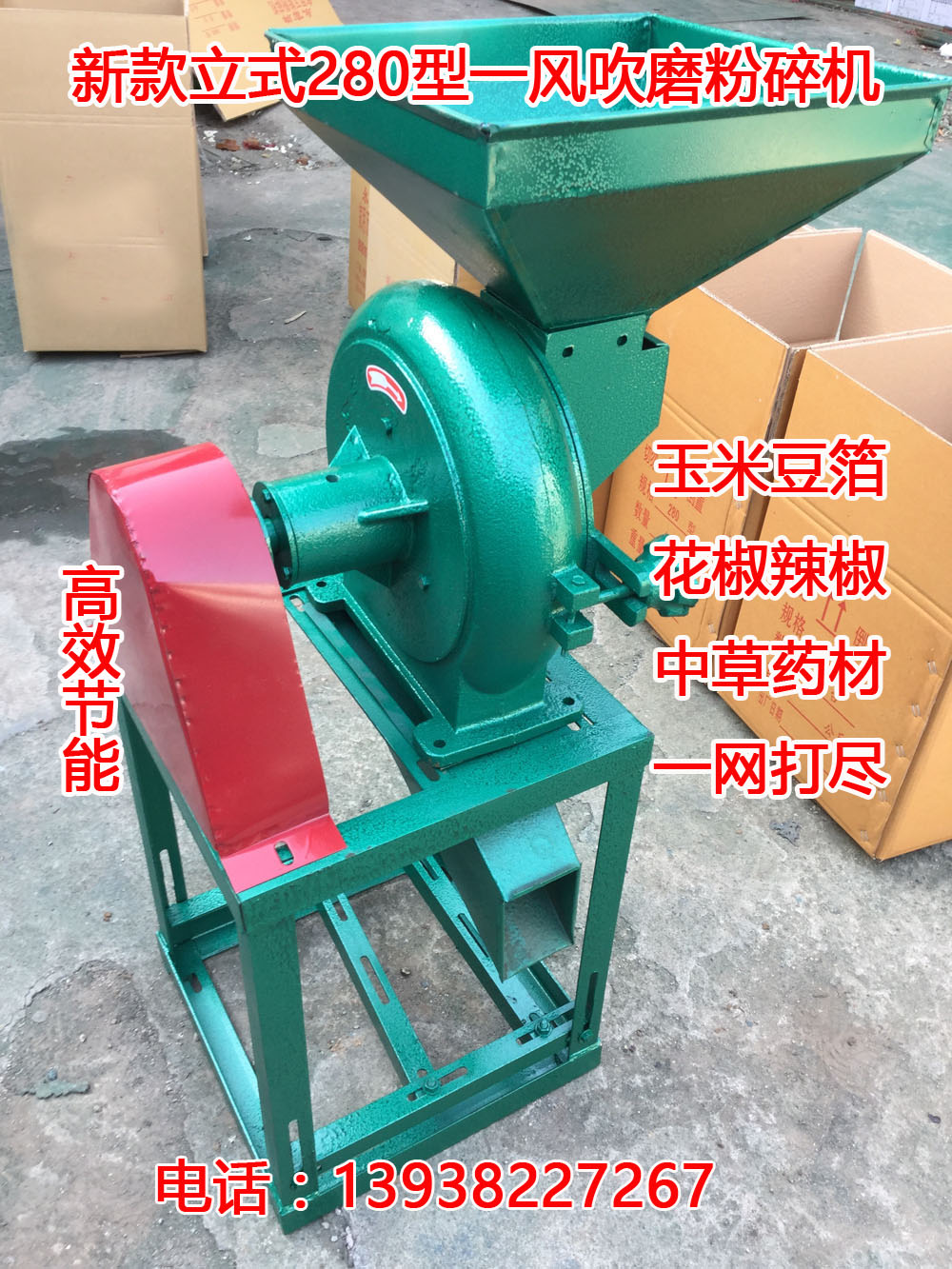 立式一风吹磨粉机 玉米磨面机 齿盘豆箔粉碎机 中药材粉碎机新款上市,电机安装在架子里面,安全可靠、干菜门市部、辣椒酱厂、食品厂、养殖场必备设备