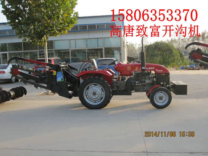 链式开沟机的主要配件:拖拉机、悬挂架、油缸、变速箱、排土搅龙、链条张紧结构、刮土平整结构、链条刀、链条