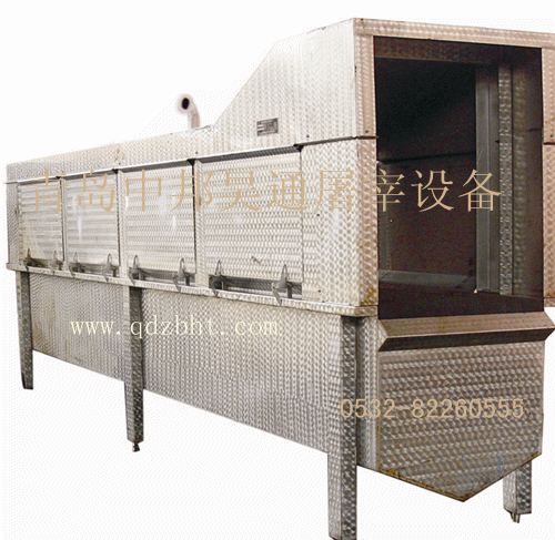 气鼓式烫毛机是本公司专为大、中型肉鸡屠宰生产线配套设计的专用设备, 适合宰杀控血后鸡体的浸烫,具有耗能低,水温自控均衡,自动补给水, 禽体浸烫均匀,池内无浮毛等优点。