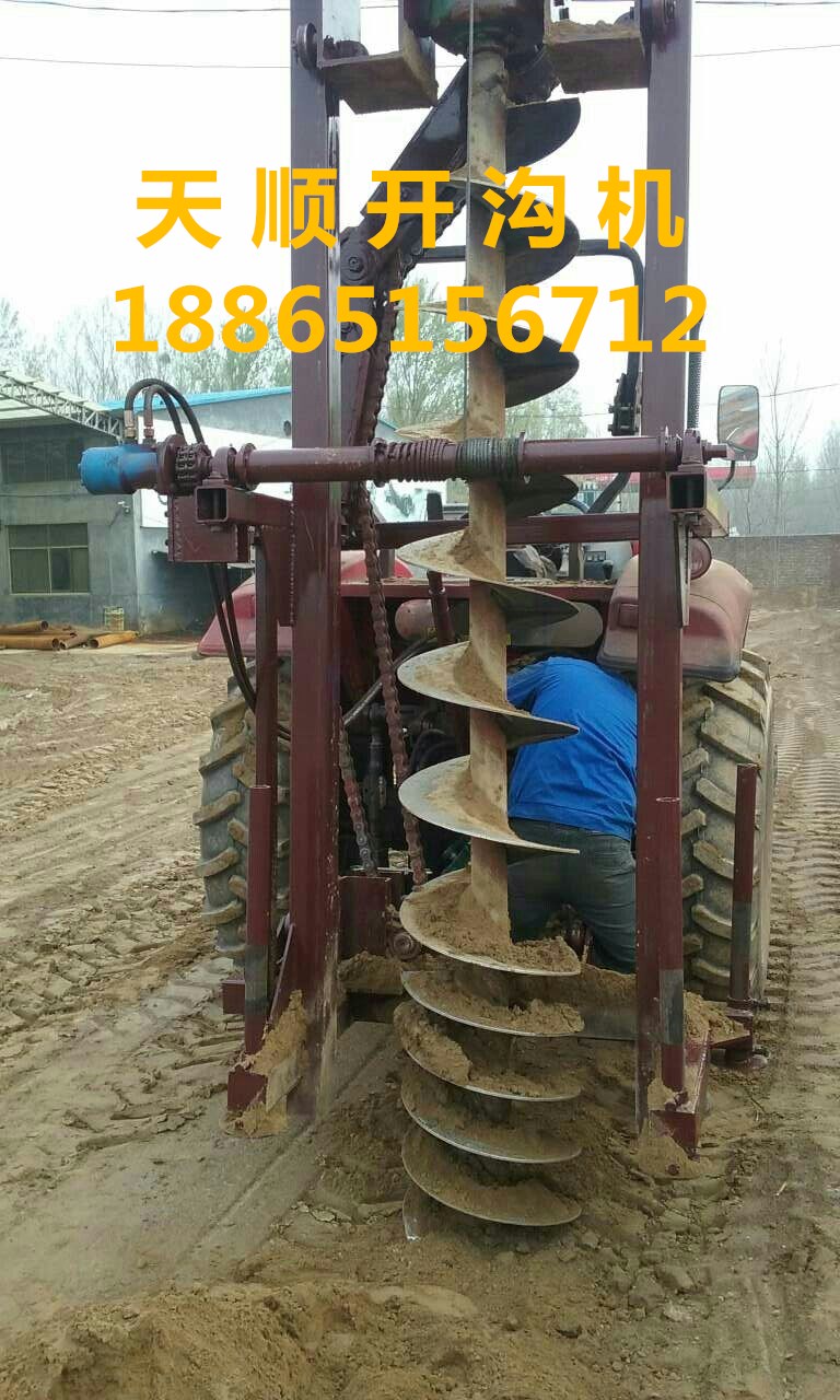 开沟机的主要部件:拖拉机、悬挂架、油缸、变速箱、排土搅龙、链条、链条刀、链条张紧结构、刮土平整结构