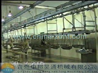 悬挂式同步检疫输送机与胴体加工输送线配合使用,实现对同一羊的胴体、白脏、红脏等的同步检疫。