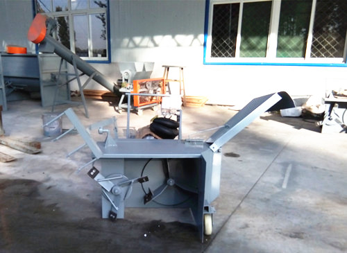 自走式设计。本机采用拌料电机与自走电机 配套动力:拌料机电机5.5KW,自走电机:0.37KW 拌料(加水后重量计算)12吨/小时