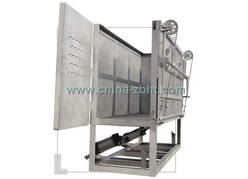牛翻板箱采用了一只气缸控制,简化了进口设备的多缸翻板箱的复杂形式,而使用效果相同。