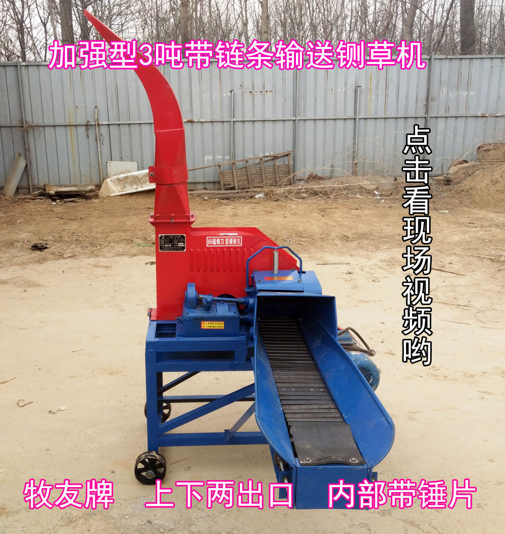 ,具有结构新颖、运转平稳、移动自如、节约能源、易于操作、维护方便、安全耐用、切段均匀等特点,适于切碎各种青草、干草、谷秸、麦秸、玉米秸、花生秧、地瓜秧等各种饲料或药材