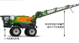 药箱容积为4500升,工作范围为24-40米,地隙最高为1.7米。