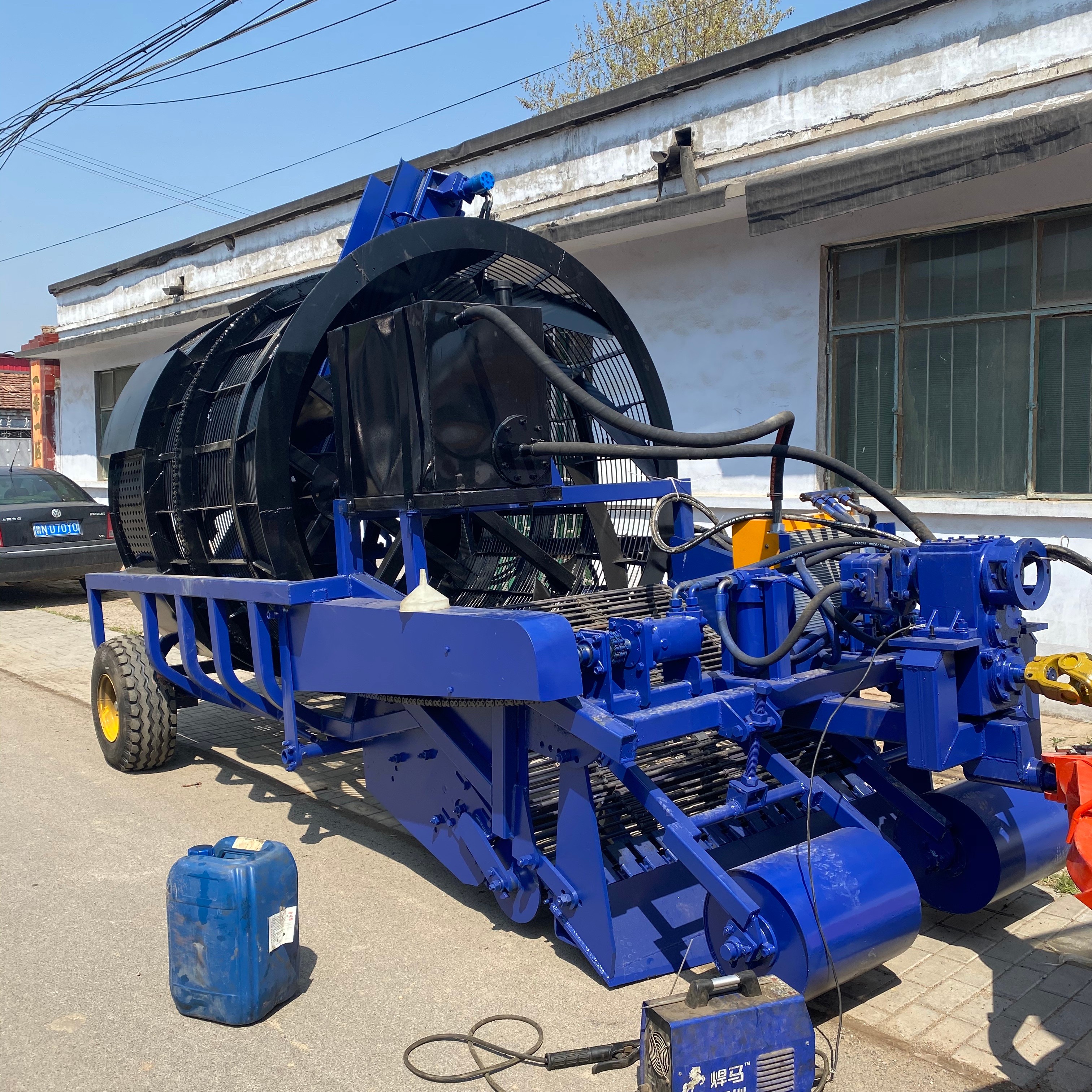 该机具有结构简单、操作方便、可卷制草场经搂集成条的牧草、田间切割晾晒后的稻麦、秸秆等农作物,也可以卷制青草缠膜青贮。