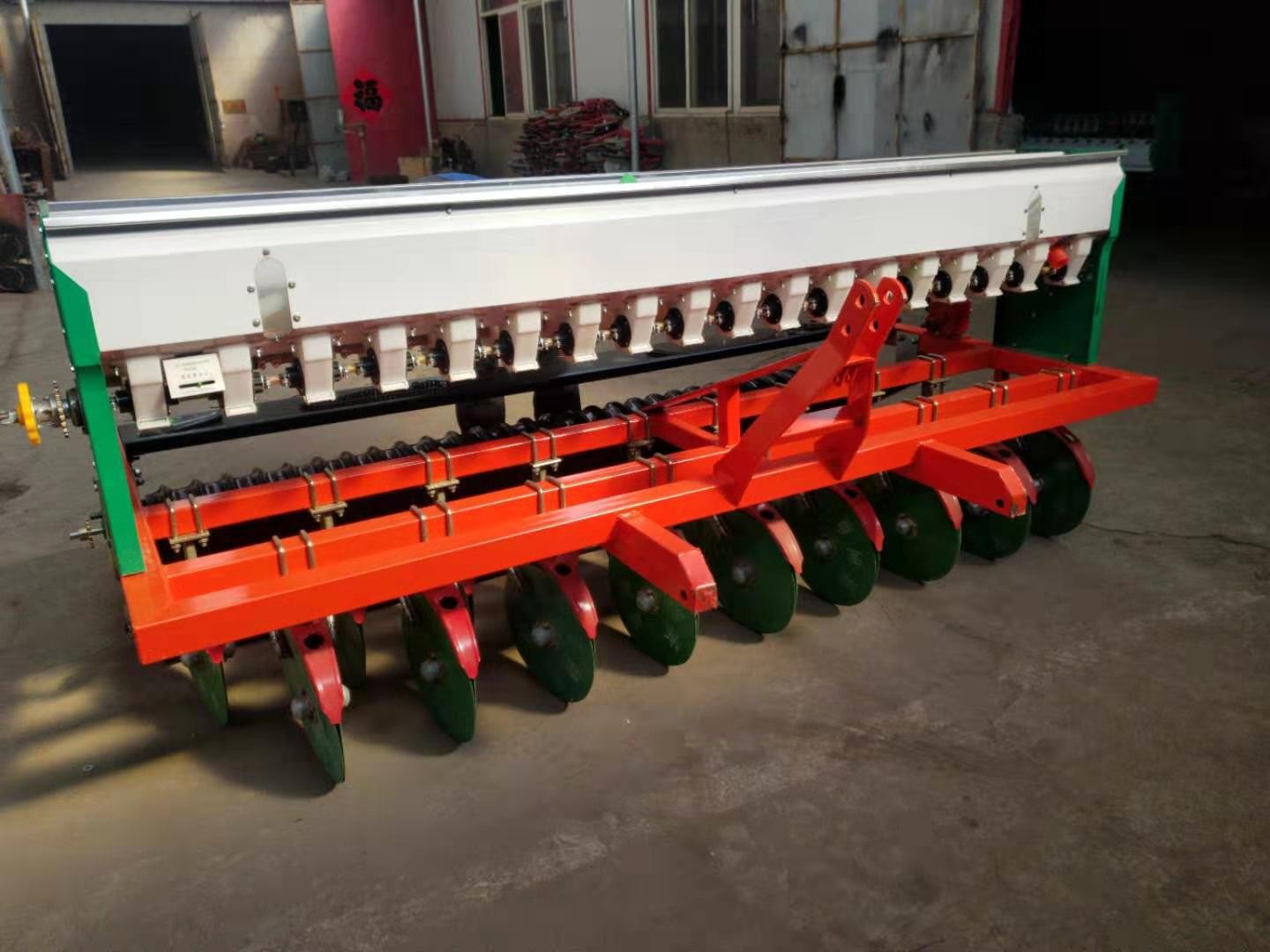 1、采用新型种箱,钉轮式排种器,可高速作业,播种量精准;配有粗细两种钉齿,可播任何谷物类种子,小麦、谷子、油菜等;变速箱输出轴与排种轴之间采用齿轮传动,播量调整精准方便。