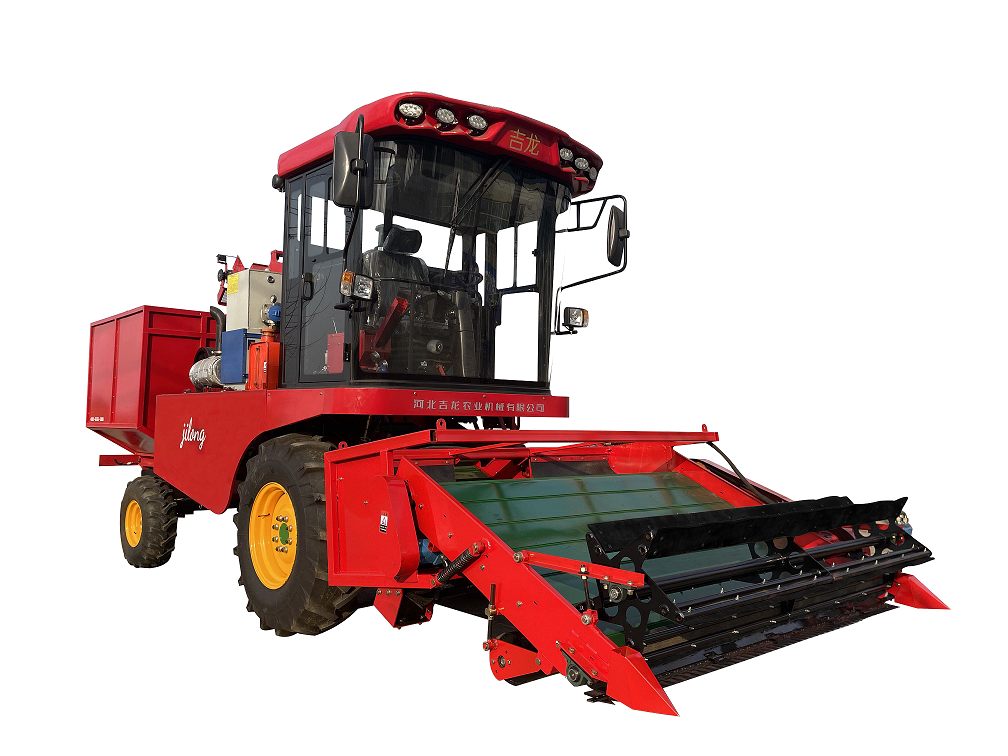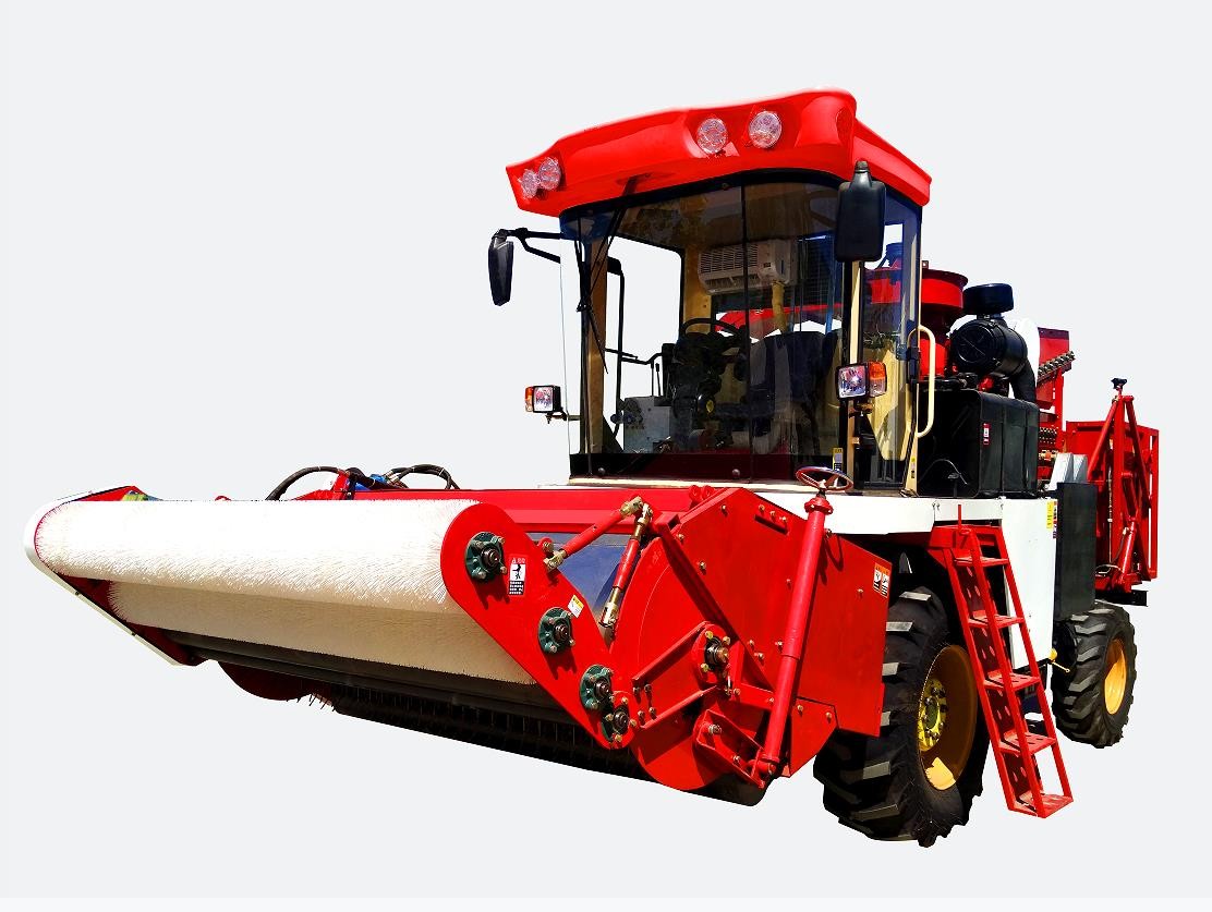 静液压无级变速驱动桥;全车液压系统传动;配备名优发动机;采用切刀+拨板型式采摘割台,针对收获作物高度可调节;先进割台仿形装置,自动调整,始终保持与地面平行;轮式、履带式两种车型可选择;