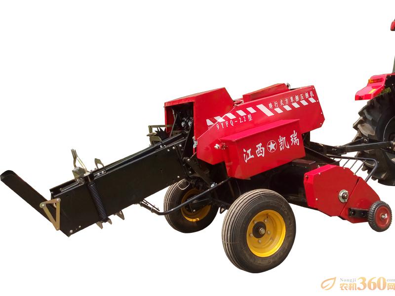 是我公司独立开发的一种新型高效正牵引、跨行式方草捆捡拾型压捆机。它主要由捡拾器、绞龙及拨叉输送器、压缩活塞、压缩室、打捆及打结器机构、传动系统、机架、牵引架及防护罩系统等部分组成。