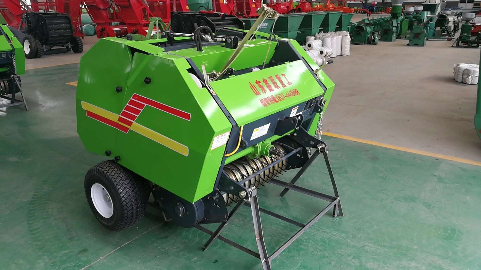 听到“滴滴”报警声,即可按下操纵杆,机械自动放出打好的成形圆捆,方便,效率高,如果操作熟练的话,一般一到两分钟就能打一个捆,一个小时保守的说,可以作业5-6亩地没问题。