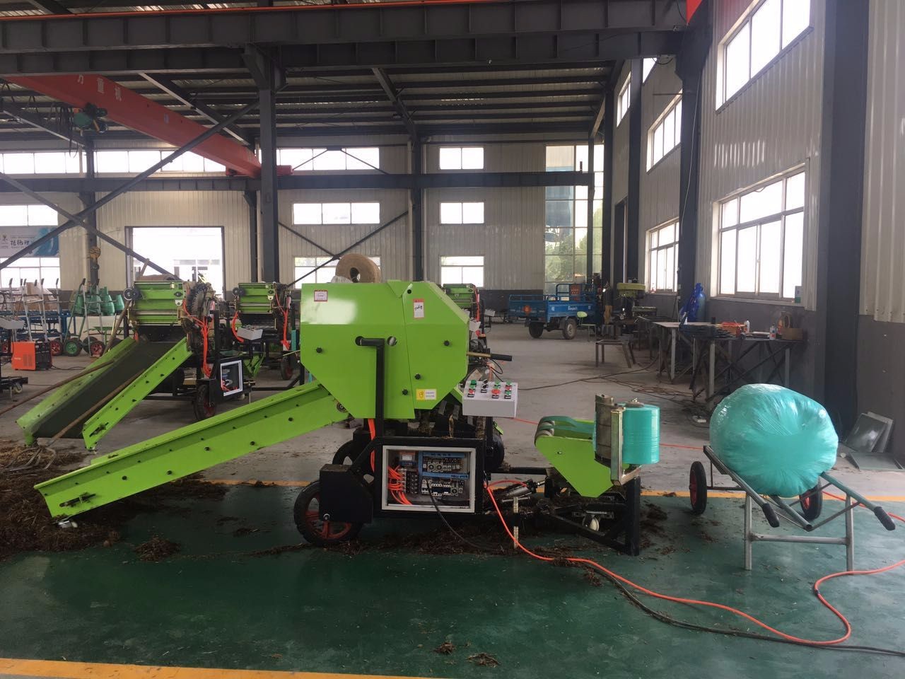 最新款电气一体化自动开仓打包一体机,先进之处在于无人开仓闭仓,自动计时绕绳、开仓、闭仓,根据物料含水量不同,密实度可以用计数器精准调整,保证每包重量在85kg-90kg左右。