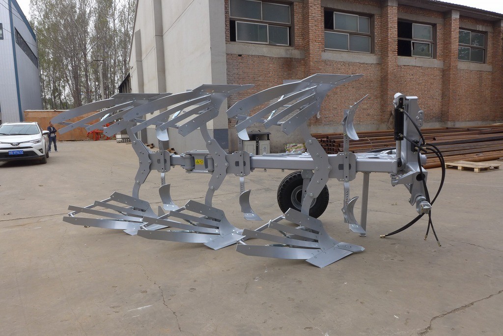 三铧翻转犁,具有组合双向犁柱发明专利,由原来铸造型更换为碳钢管状型,解决了目前铸造的一切缺陷,成倍减少犁柱重量,机具整体轻量化,不会发生由于机具过重造成前轮不稳,甚至前方向失灵,主机移动调头更方便。
