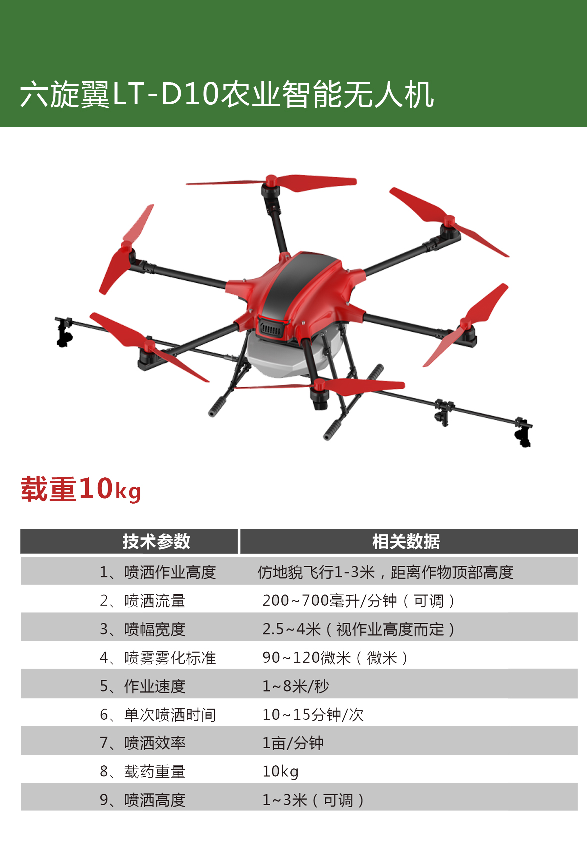 红旗N10是一款具备智能高效稳定的高性价比植保机,拥有全防水的机身设计,全自主的智能作业模式、大功率超声波仿地飞行系统,以及简单方便的一体式地面站。简单,易用,高效,智能,稳定。
