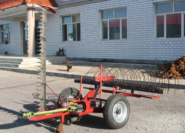 9GLQ-2.1型牵引往复式草机组,是一种以胶轮为支撑的牵引式新型割搂草机组,该机是与15马力以上侧输出或后输出四轮拖拉机配套使用的割搂草机。