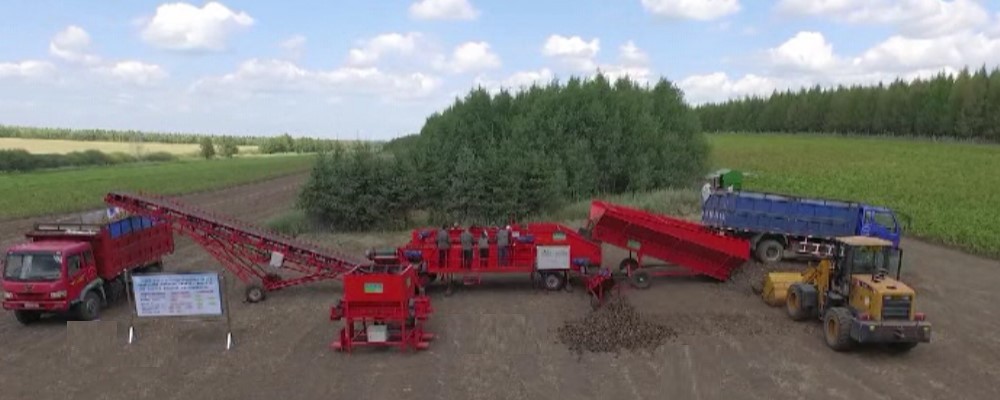 马铃薯田间分选线生产技术是将马铃薯联合收获机、马铃薯车载转运料斗、接收料斗、集成分选机、装车机等可移动设备集成组合后在田间地头设立的一个具有筛分去土、清泥、除秧、拣选、分级、灌袋包装或装车的多功能机。