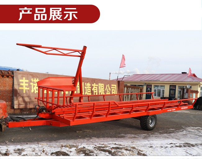 一个驾驶员就可以完成自动捡拾工作.可捡1-1.5米草捆.车有单轴.双轴可选.专业轮胎不压地,不陷车,捡拾速度可达到15公里/小时.根据运输距离不同每天可完成800-1100秸秆草捆
