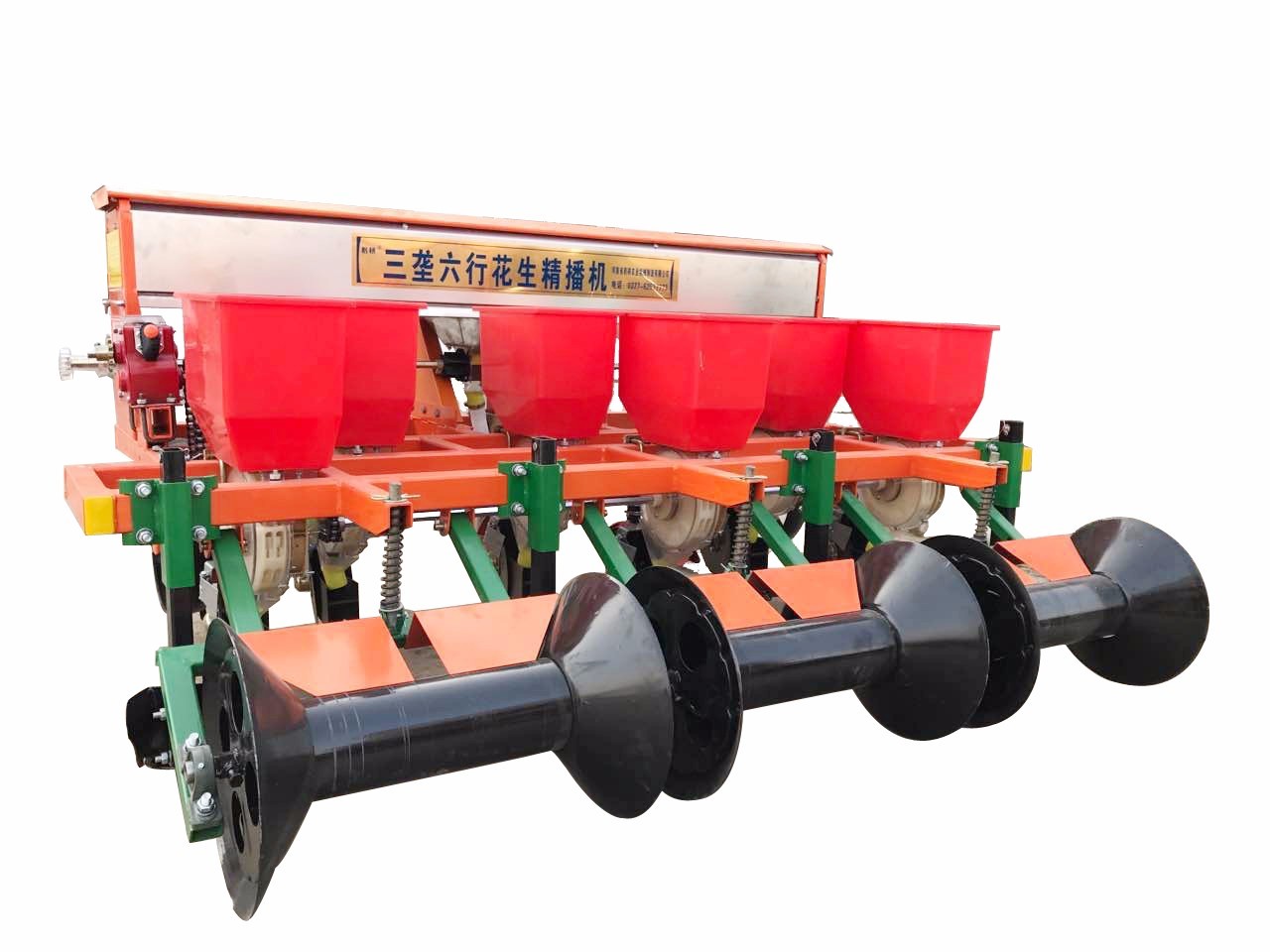 三垄六行花生播种机,配套动力为35-50马力。该机可一次性完成施肥、播种、起垄、振压,作业质量好,运行平稳。