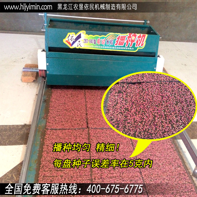 采用一遍成播种,播量数字微调,速度可控,播 种均匀,每盘误差5克以内,每亩地节约2斤种子,对种子干湿度要求不 高,单人操控,省时,省工、省力、保证育秧质量,提高出苗一致率, 降低补苗成本。